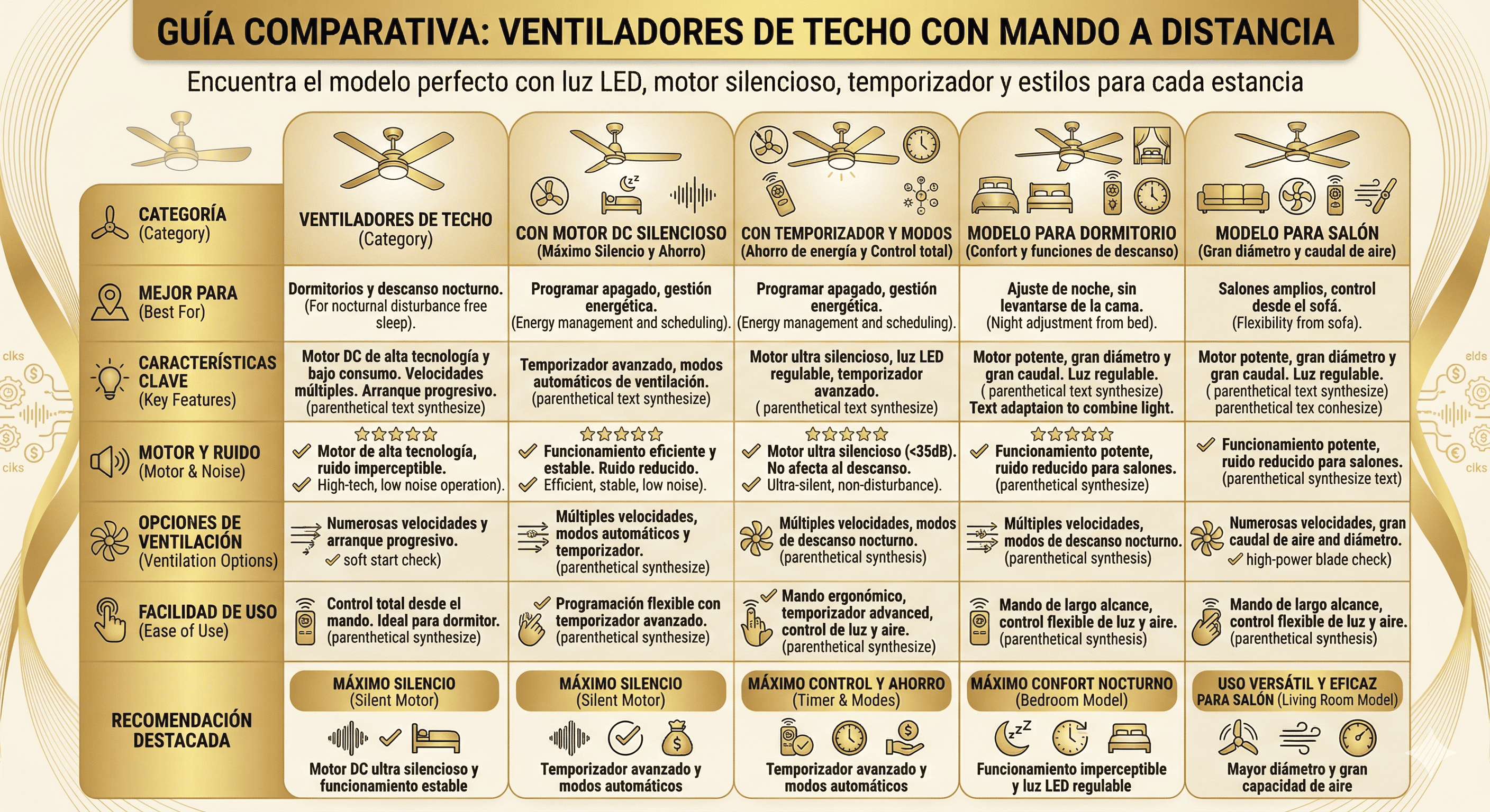 Además, la iluminación LED integrada proporciona un consumo energético reducido y una larga vida útil, lo que convierte a estos ventiladores en una solución eficiente para el hogar.